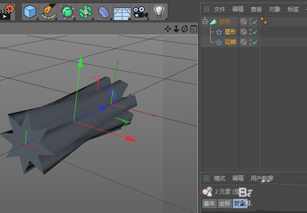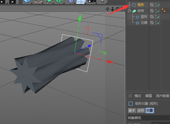 完成上一步后,一个由矩形过渡到圆形的三维模型应该已经出现了。为了看得更清楚,你可以再新建第三个样条(比如一个星形),将它与其他样条并列放在放样的子级中。