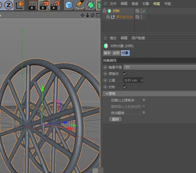 在对称的参数中,选择合适的镜像平面(通常是XY或ZX平面),并增加副本数量,一个完整的摩天轮骨架就瞬间呈现了。