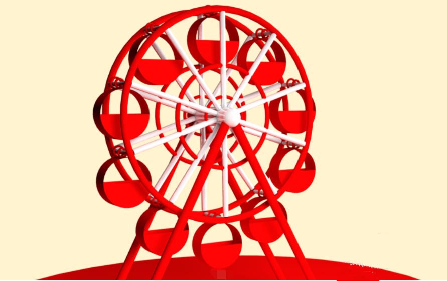 所有步骤完成后,点击渲染。瞧,一个由你亲手构建的三维立体摩天轮就诞生了!