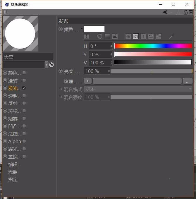 接着,双击这个刚命名的材质球,打开材质编辑器窗口。这一步的操作重点是:找到并勾选“发光”通道,同时把其他所有通道(比如颜色、漫射等)的勾选都去掉,确保只有发光通道是激活状态。这个材质编辑器窗口先别急着关,我们马上还要用到它。