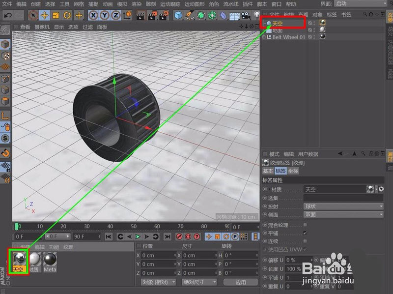 最后一步,就是让材质和对象合体。用鼠标将我们之前精心准备好的“天空”材质球,直接拖拽到对象管理器中的“天空”图层上。大功告成!整个HDR天空的创建和添加流程到此结束。
