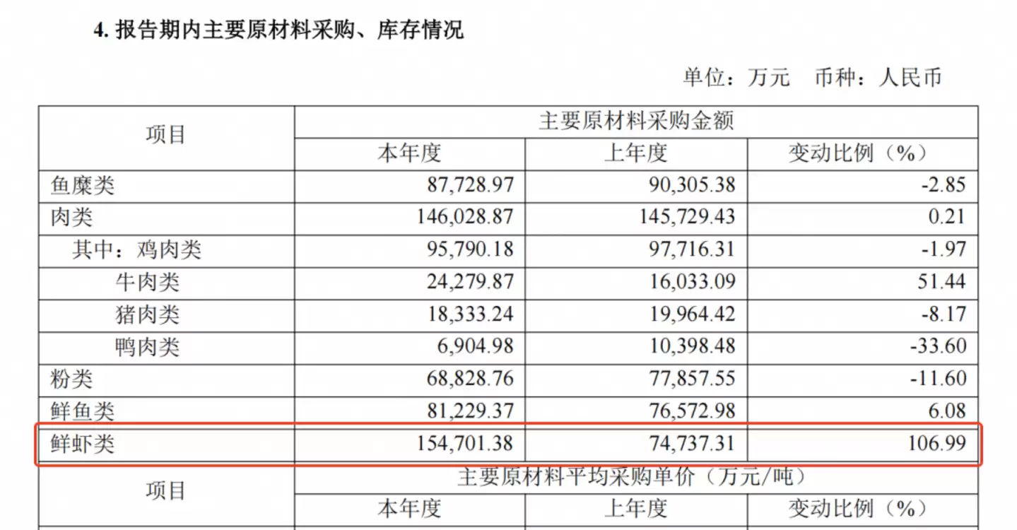 2025年,安井食品鲜虾类原材料采购金额激增(图源:安井食品年报)