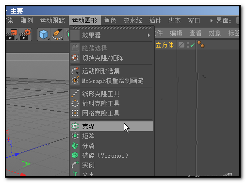 接着,找到菜单栏中的“运动图形”选项。点开它,下拉菜单里那个叫“克隆”的功能,就是咱们接下来要用到的利器。