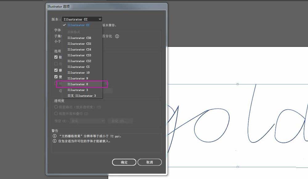 路径做好后,保存时版本选择可要留神。经验表明,“Illustrator 8”是C4D识别度最高、最稳妥的版本。选对了,后续导入基本一路绿灯。