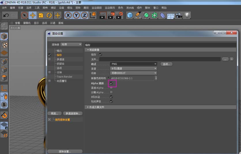 准备输出最终效果图了。渲染设置的“保存”选项里,格式建议选择“PNG”,并务必勾选“Alpha通道”。这能为你保留一个透明背景,后期在PS里合成会灵活得多。