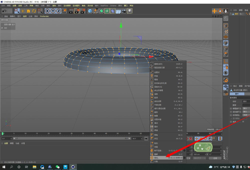 最后一步,做个简单的清理和优化。由于删除了部分结构,模型可能会留下一些多余的点或线。此时,点击右键,在弹出的菜单中选择“优化”功能。这个操作会自动清理冗余元素,让剩下的一半圆环模型结构更干净、更规范。至此,一个完美的半圆环就裁剪完成了。