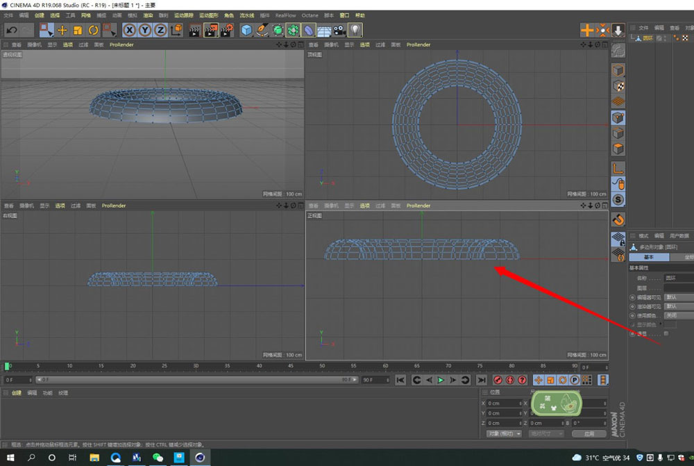 首先,从创建基础模型开始。长按工具栏上的立方体图标,在弹出的菜单中选择“圆环”来新建一个模型。创建后,别忘了先在对象面板里调整它的半径参数——内半径和外径的尺寸。这一步很关键,因为它决定了你最终得到的“半圆环”的粗细比例,提前调好能省去后续很多麻烦。