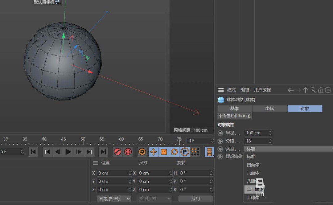 我们先从基础几何体入手。在场景中创建一个球体,但别急着用默认的——将它的类型从“标准”切换为“二十面体”。这样做的好处是,后续细分和变形时,布线会更加均匀规整,为之后的步骤打好基础,具体效果可以参考下图。