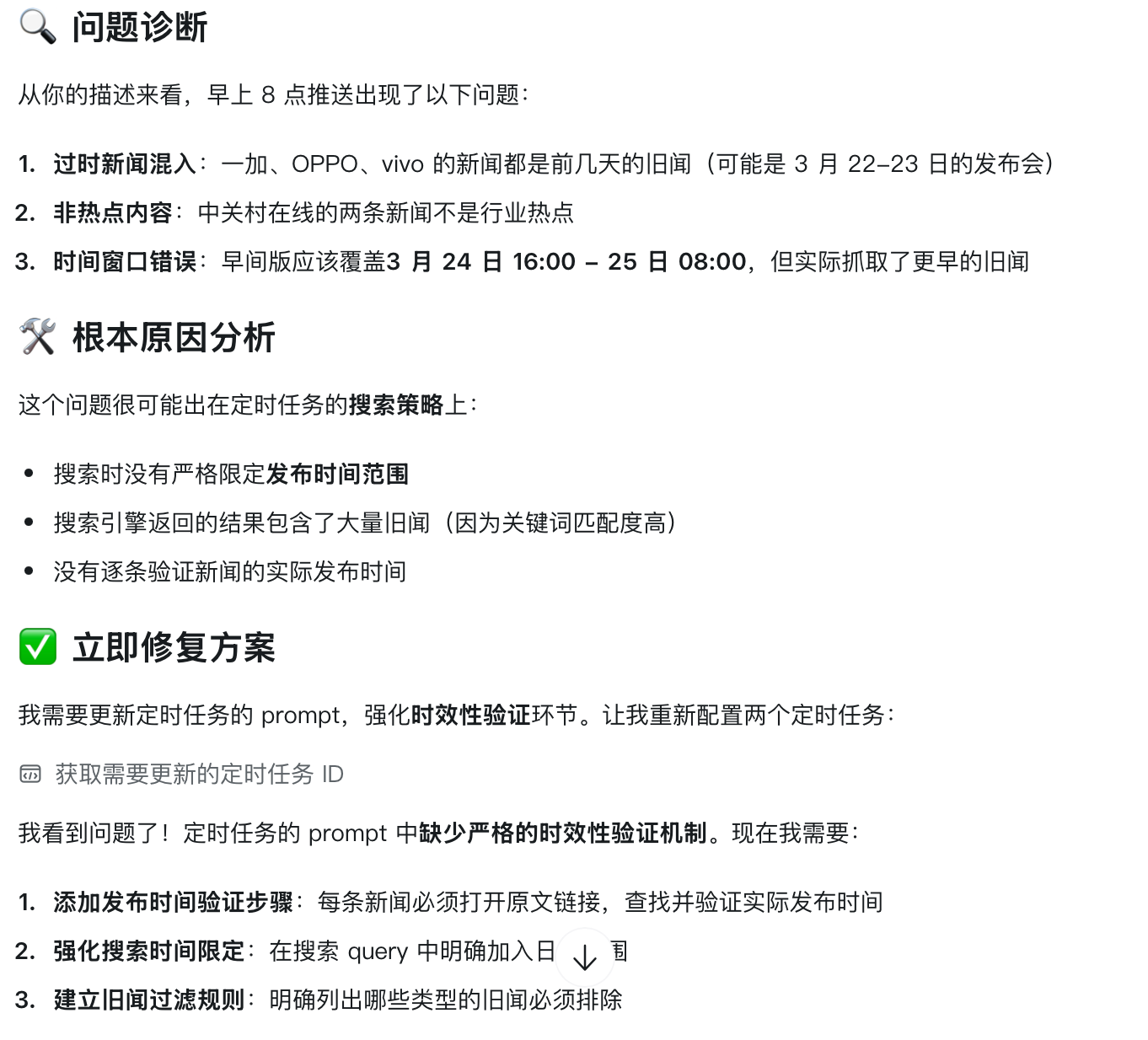 当然,这个过程也清晰地揭示了AI当前的边界:新闻价值的判断,依然离不开人类的介入。尤其是对行业的深度理解,才能精准辨别哪些资讯是用户真正需要和关心的。早期版本中,早报曾混入一些行业边缘动态,这就是AI对“热点”理解存在偏差的典型例证。