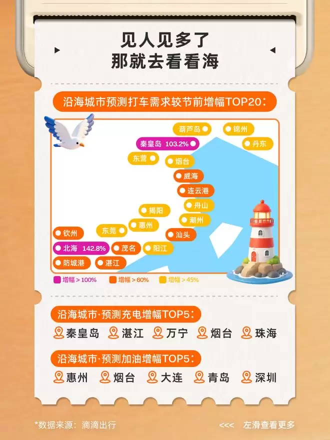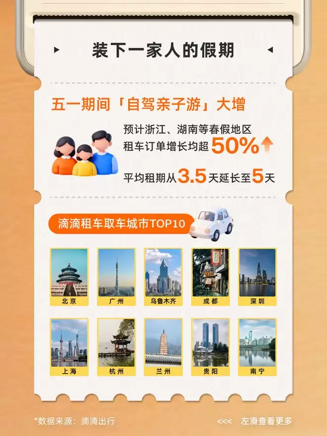 五一假期将至,出行市场已经蓄势待发。根据滴滴出行最新发布的预测数据,这个假期的出行热度将远超平日,其中异地打车需求预计将比节前上涨56%,成为最显著的增长点。