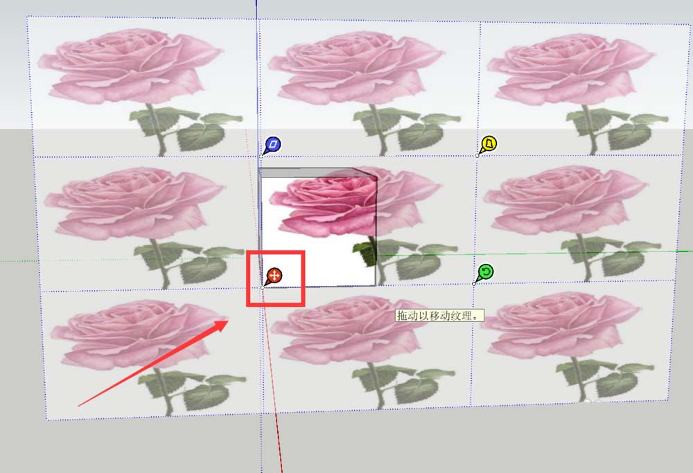 瞧,界面跳出来后,你会看到四个小图标。这四个工具,各自掌管着调整贴图的不同“武功”。图中红色方框圈出的那个图标,就是“移动”工具,它的任务很简单——帮你拖动贴图,把花朵或者其他图案摆到最合适的位置。