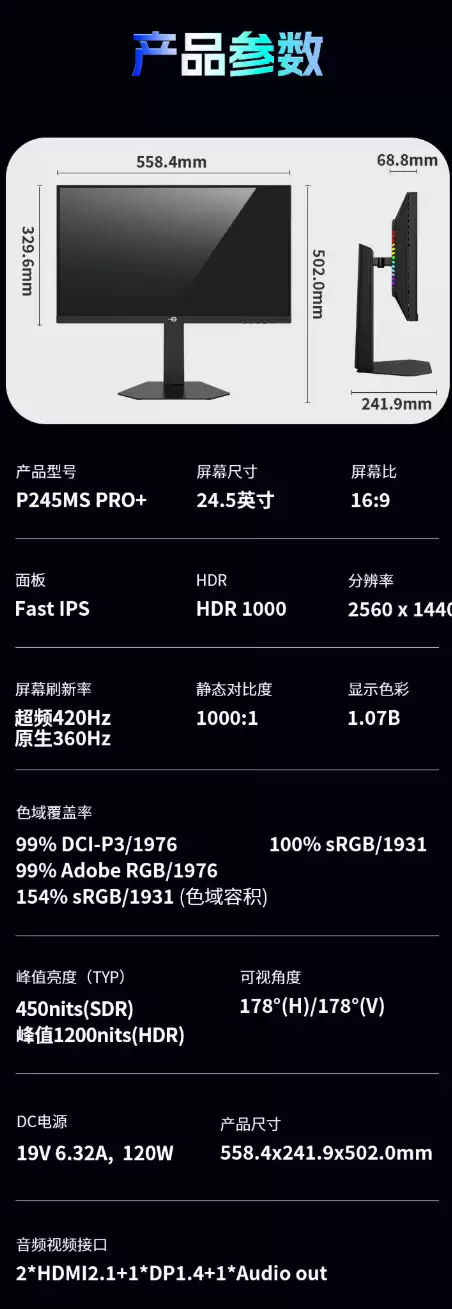 为方便您全面了解,附上该显示器的详细参数规格表: