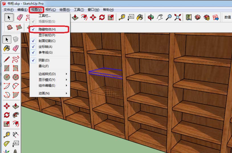 首先进入"视图"菜单,勾选"隐藏内容"选项。这个操作会让所有被隐藏的对象以半透明方式显示在场景中。