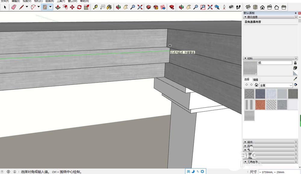 看,通过移动鼠标,矩形的大小可以自由控制。不过,操作时你可能会遇到一个小麻烦:如果摆放模型的位置比较狭窄,那个用来确定矩形终点的虚线,可能根本看不到,这就有点让人头疼了。
