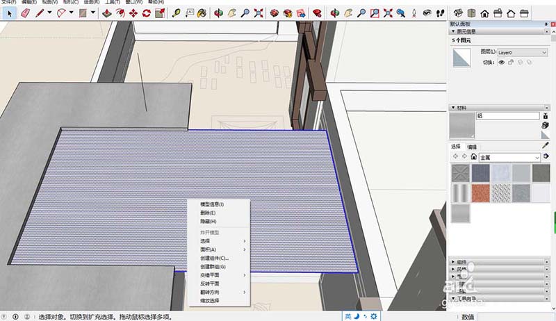 矩形绘制完毕,工作还没结束。一个非常重要的好习惯是:全选这个矩形,右键点击,选择“创建群组”。对模型进行编组有什么好处?它能让这个矩形变成一个独立的“模块”,以后选中和编辑它都变得非常方便,而且完全不会干扰到场景里的其他模型。