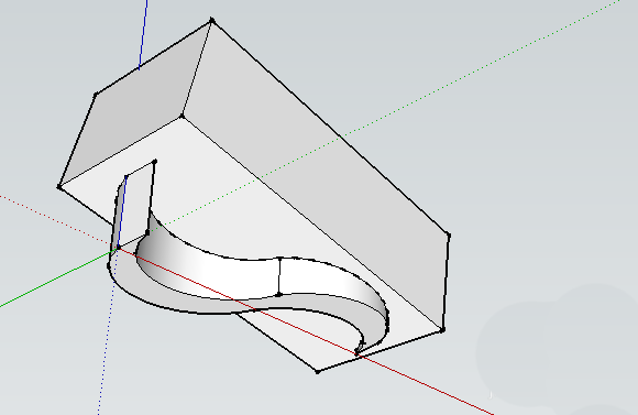 3. 有了平面支撑,就轮到“推拉”工具登场了。用它将刚才绘制的曲线平面向上拉伸,得到一个实心的曲线体块。你看,坡道的雏形这不就出来了吗?
