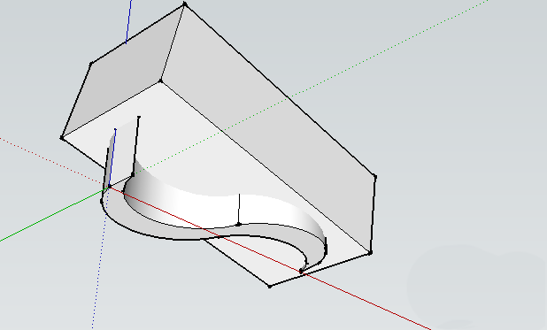 7. 最后一步,也是最解压的一步。拿起“橡皮擦”工具,耐心地将长方体以及曲线体位于斜面上方的多余部分擦除掉。随着那些多余的线条和面片消失,一条干净利落的曲线坡道便完整地显现出来。到这里,整个建模过程就完美收官了。