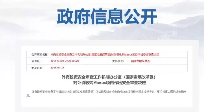 一则重磅消息传来。国家发改委外商投资安全审查办公室,依法对外资收购Manus项目作出了禁止投资的决定,并要求撤销相关交易。这可不是小事,它清晰地传递出国家在关键领域外资准入上的审慎态度,以及对外商投资安全审查机制的严格执行力度。>> 查看详情