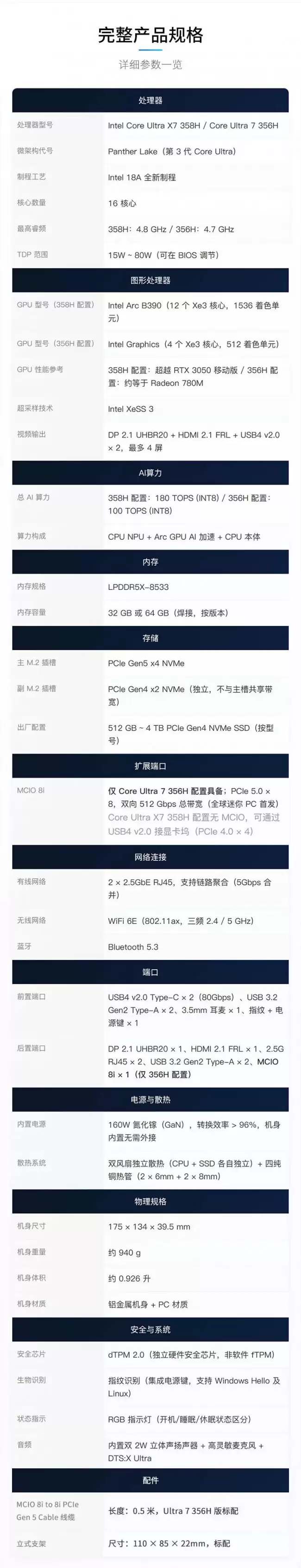 具体是怎么做到的?简单来说,GPD把Intel最新的18A制程芯片、Arc B390 GPU、高达180 TOPS的算力,以及那个关键的服务器级MCIO 8i端口,全部塞进了一个仅有0.926升的紧凑机身内。这密度,确实有点东西。