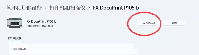 4. 进入该打印机的详细页面后,找到并点击【设置为默认值】按钮。