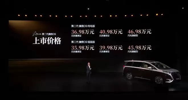 4月27日,深圳,腾势汽车正式发布了其核心爆款车型的全面迭代之作——第二代腾势D9。新车提供纯电与插混双动力选择,共六款车型,官方指导价定在35.98万元至46.98万元区间。值得一提的是,购车权益与服务包价值合计超过了10万元,诚意可见一斑。