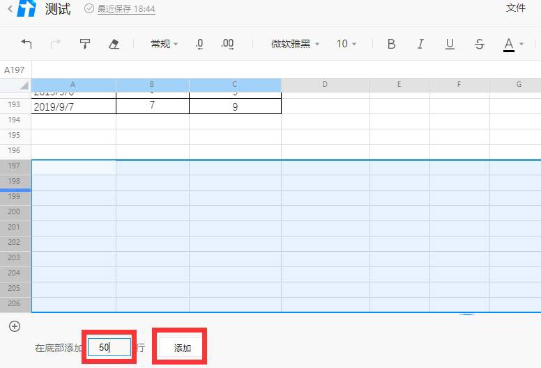 要是10行还不够怎么办?没关系,你可以手动输入想要的数字。在行数输入框里填上,比如“50”,再点“添加”,对应的行数立刻就生成了。这个功能在处理大批量数据时非常救急。