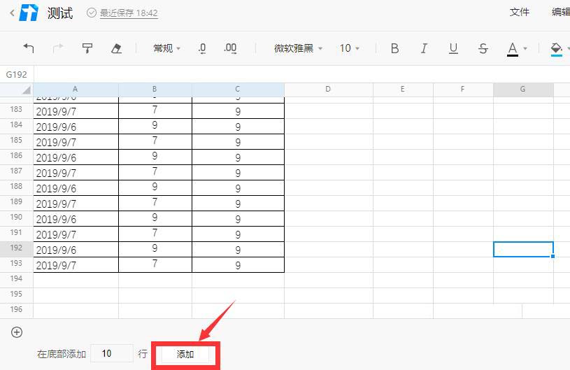 如果需要一次性添加多行,也别傻傻地一直点。在这个“+”号旁边,通常还会有一个“添加”按钮。点击它,默认就会一次性给你增加10行,效率高多了。