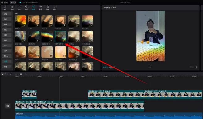 进入特效面板后,你会发现特效被分成了好几大类。我们要找的“彩虹光影”,就归类在“光影”这个系列里。直接点击“光影”分类,下拉浏览就能看到。