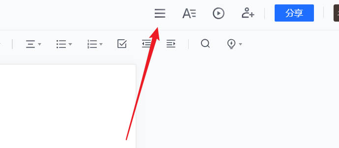 文档打开后,注意看右上角。那里有一个由三条横线组成的【菜单】图标,点击它。