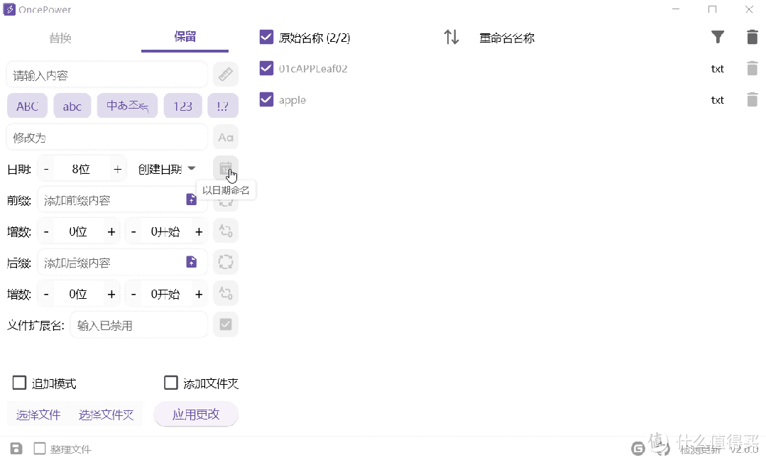 开启“以日期命名”后,匹配到的内容就会被替换成日期。默认采用的是文件的创建日期,并以8位数格式(如20240319)呈现。