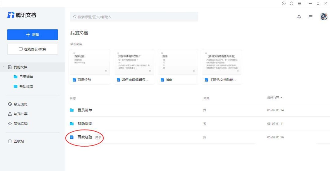 1、首先,打开腾讯文档,在“我的文档”列表里找到你需要处理的那个文件,点击打开它。就像下图这样,找到目标文件,点击进入。