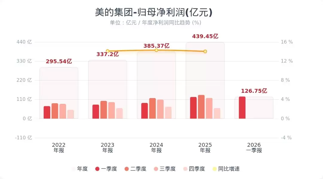 格隆汇4月29日消息,美的集团正式发布了2026年第一季度的成绩单。报告期内,公司实现营业收入1310.99亿元,同比增长2.55%;归属于上市公司股东的净利润达到126.75亿元,同比增长2.03%。单看这两个核心数字,你可能觉得波澜不惊,但深入业务板块一看,故事就丰富多了。
