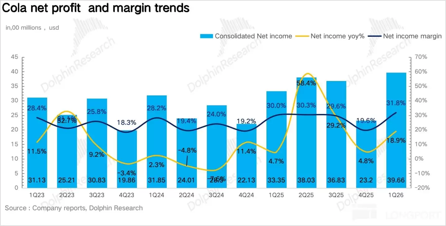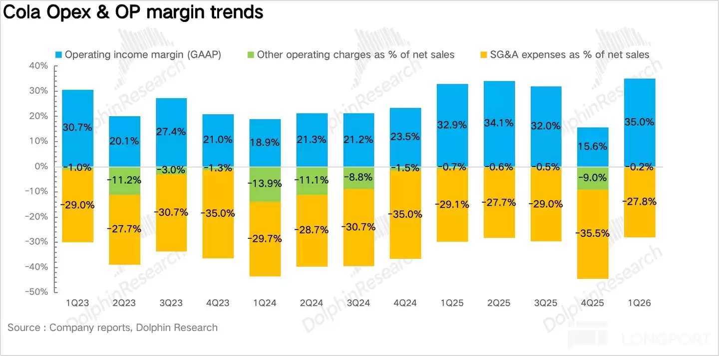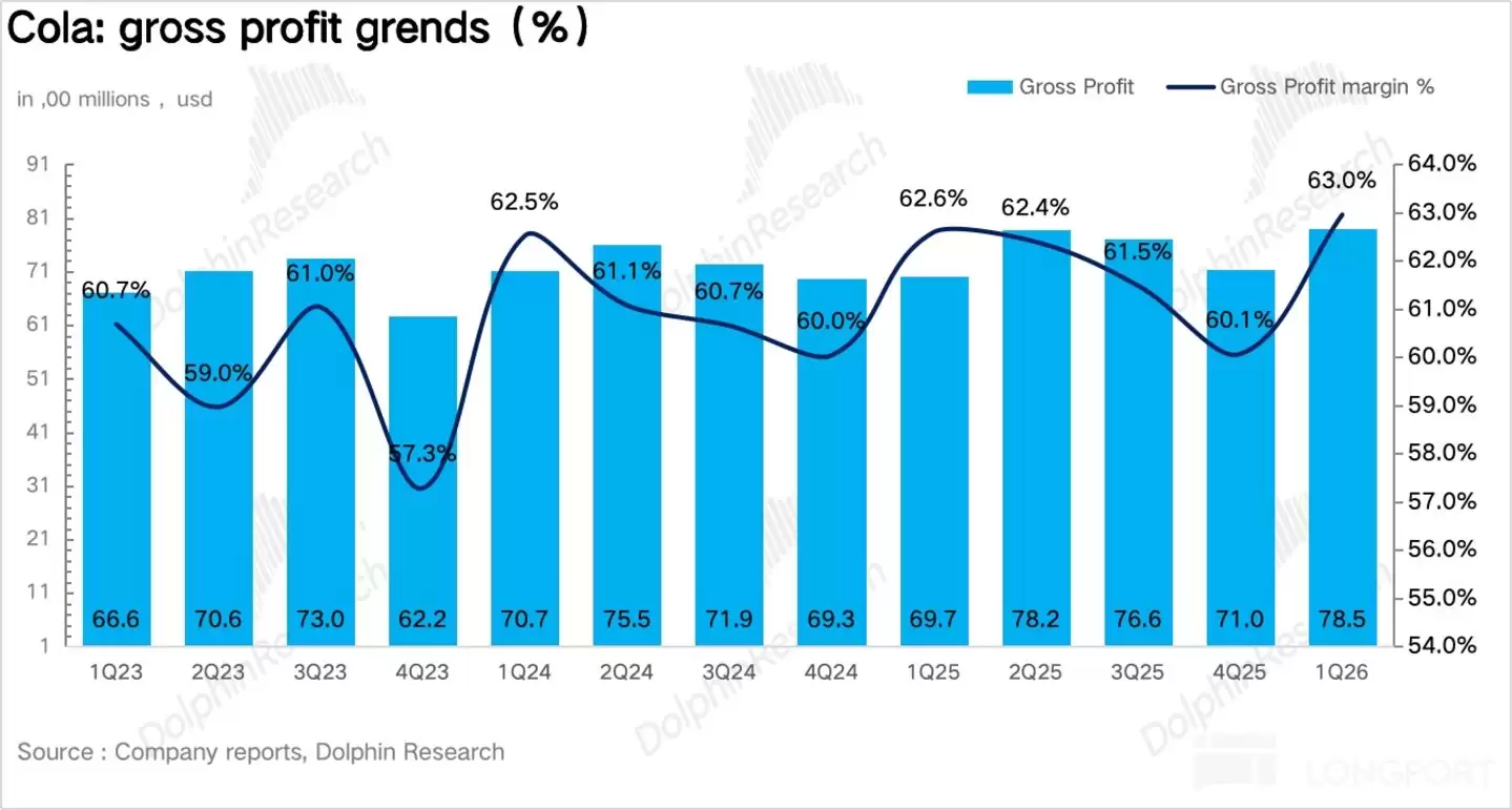 1. 轻资产模式的“护城河”价值在宏观波动中凸显。在地缘冲突与贸易摩擦加剧的背景下,许多跨国消费品公司面临成本压力。而可口可乐的商业模式使其能够更好地规避大宗商品价格和关税的直接冲击,这种盈利韧性在逆风期成为了宝贵的资产。