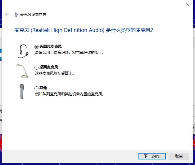 如图四,选中图三中麦克风模式后,GoldWave中文版弹出图四对话框,操作者可依据自己的习惯或现有设备进行选择。系统提示,头戴式麦克风更加适合语音的识别。点击下一步,继续操作。