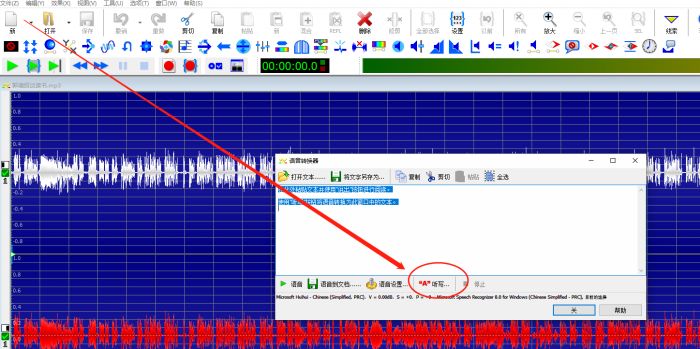 在GoldWave中文版打开音频内容,再依照图一中的路径打开“语音转换器”。如图二,在转换器控制面板下端找到“听写”按钮,点开。