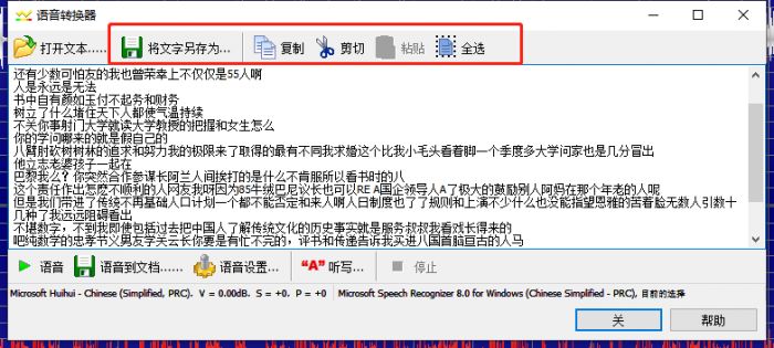 GoldWave中文版将语音内容全部识别完毕后,操作者可根据语音内容对文本信息进行精准化修改,确保无误后,可选择另存为、复制、剪切及全选等操作。
