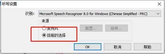 如图三,GoldWave中文版中的听写设置其来源分为两类,即麦克风和目前的选择。默认设置为“目前的选择”,若操作者选择麦克风模式,需对设备进行设置及培养。