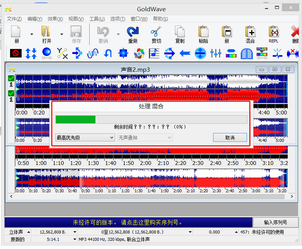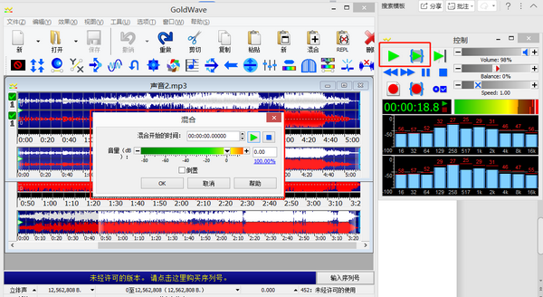 图4:用Goldwave 软件将声音混合在一起的界面