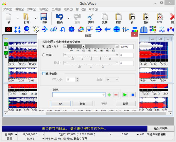 图5:用Goldwave 软件音高界面