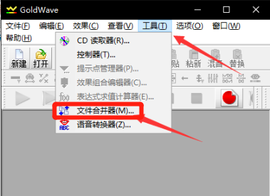 首先,将我们想要合并的多个音频都放在同一个文件夹里,然后打开软件,点击菜单栏上面的【工具】,再点击文件合并器。