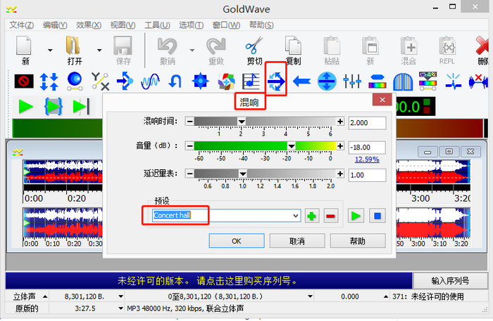 图3:Goldwave中文版混响功能界面