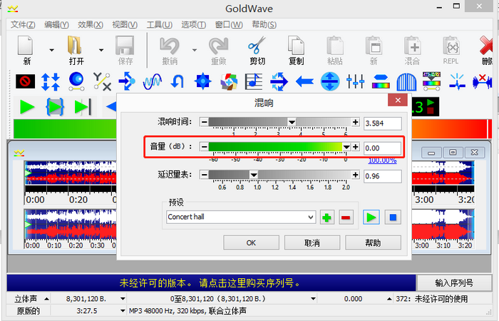 图4:Goldwave中文版用混响功能做特效的界面