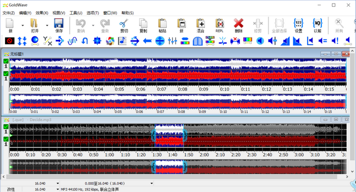 使用粘贴在命令,就是将剪切板上的音频粘贴插入在另一段音频中,可以插在除开始标记以外的任何地方。