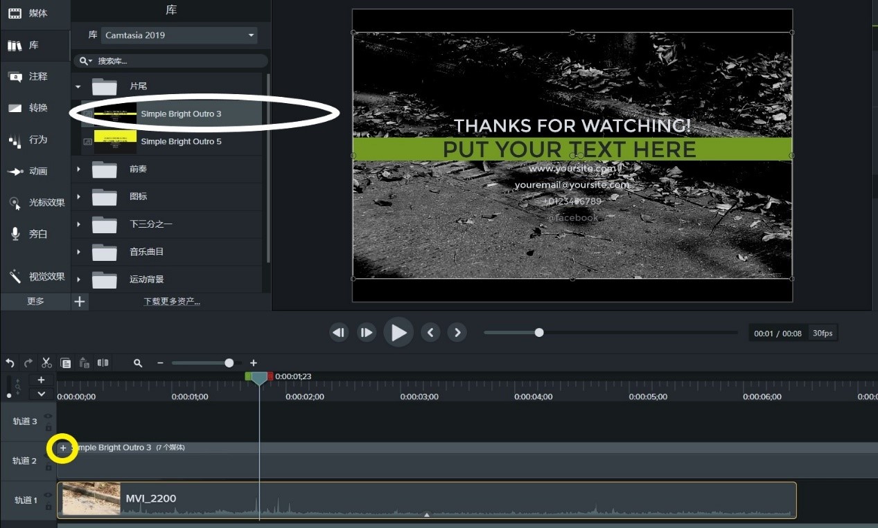一个好的片子就一定要有一个好的片尾,如果没有不要怕,我们的Camtasia Studio里面早已经准备好了。