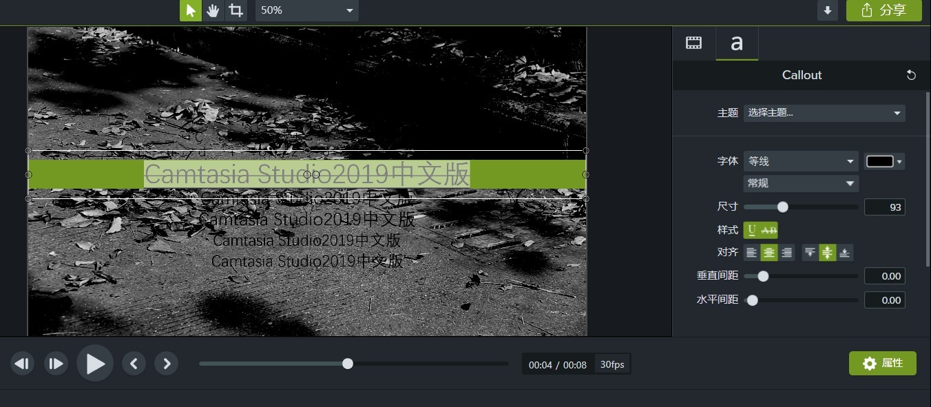 我们以“Camtasia Studio2019中文版”为例子,对预设进行更改编辑,更改的效果就如图四所示一样。所谓预设就是我们只要其外形,不要其文字,文字都是我们后来自己更改的。