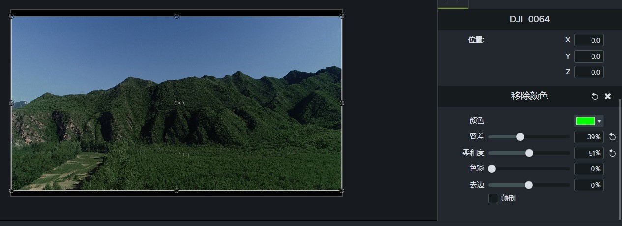 我们先说“移除颜色”,顾名思义就是把颜色移除掉。因为在我们的一些视频录制的时候,难免会出现一些杂色或者某颜色过曝,欠曝的问题。面对这种情况,我们可以使用“移除颜色”来调整。当然啦不可能只通过一个“移除颜色”就可以全部搞定,还需要其他功能的配合。其他功能在这里我们先不做讲解。