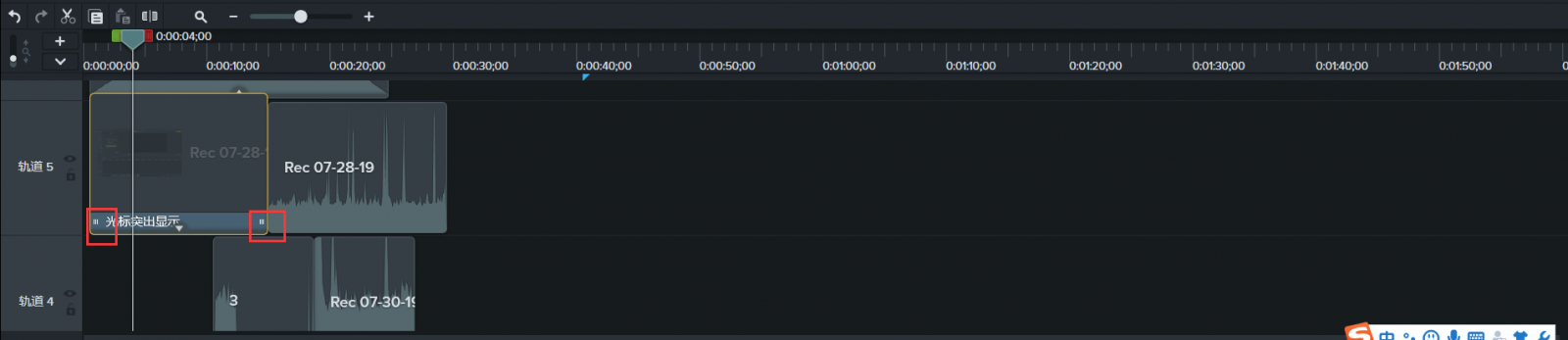 将效果添加到时间轴上,然后拖动效果的两端来调整持续时间,是Camtasia比较方便的一个功能,播放头能帮我们确定时间点,根据播放头的位置来调整效果持续的时间又是另一个方便的操作。