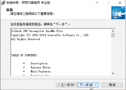 闪客精灵 7 简体中文 【专业版+ Win】如何下载安装?我们先来了解一下闪客精灵是什么?有什么用处?下面正软小编将给大家详细介绍一下。闪客精灵是一款先进的shockwave Flash 影片反编译的工具,它能捕捉.反编译.查看和提取shockwave Flash 影片(.swf和.exe支持Fla格式文件),轻松反编译一个或是多个SWF格式文件为FLA/FLEX项目文件。支持Flash 6, Flash MX 2004, Flash 8, Flash CS3, Flash CS4,Flash CS5。它能恢复FLA/FLEX项目文件,并反编译FLASH的所有元素,包括:矢量图,声音,图片,片段,字体,文本,脚本等。了解大概后小编就带大家学习如何下载安装闪客精灵7 简体中文 【专业版+ Win】。