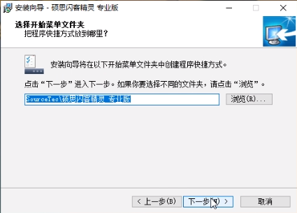 弹出选择开始菜单文件夹窗口,您可以自主选择将程序快捷方式放在哪里,点击下一步
