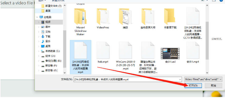 2.点击选择文件之后接下来在出现的打开文件界面中,找到想要修复的错误视频并选中,然后点击右下角的打开按钮。